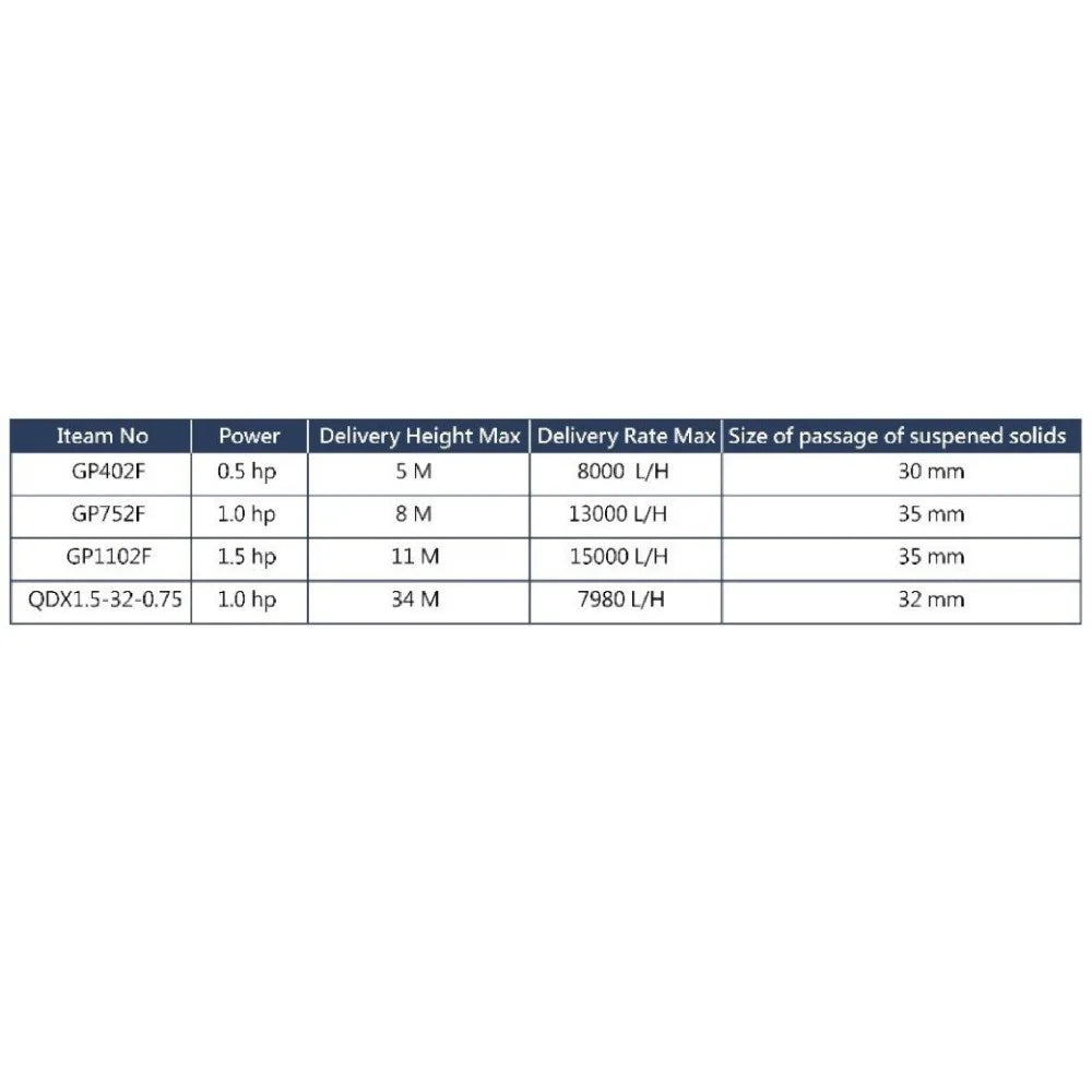 • مناسب لضخ المياه النظيفة (العذبة)