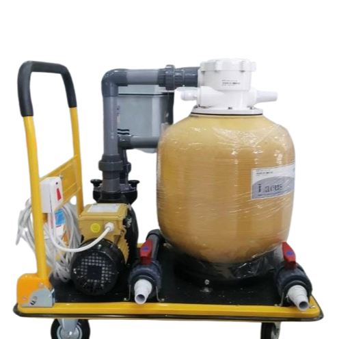 عربة متنقلة +مضخة مسبح 1.5حصان + فلتر رملي 24" + مجموعة نظافة